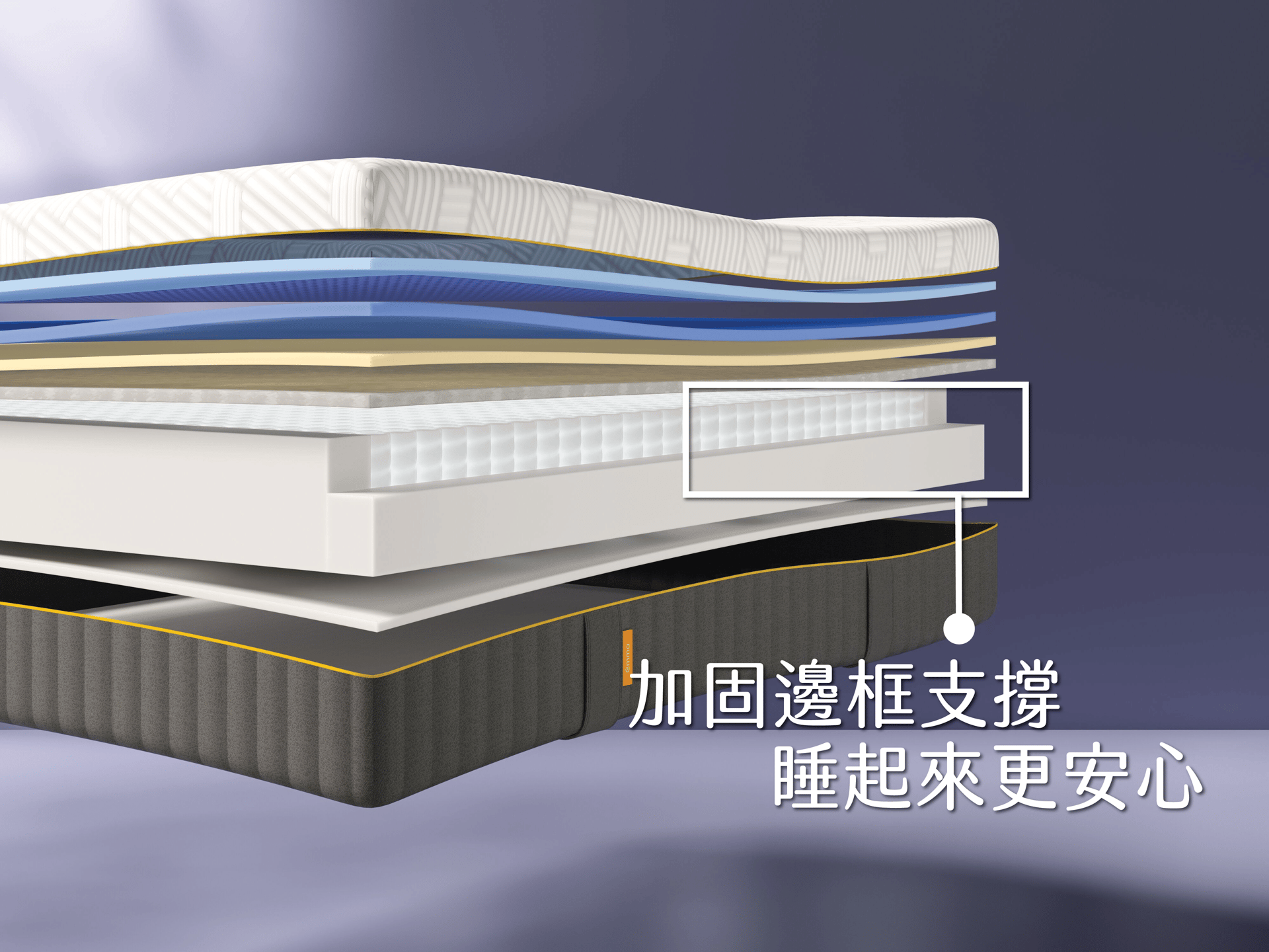 讓你從躺下到起床,每一刻都穩穩的。加固圈提升了整體結構穩定性,有效延長床墊壽命與睡眠品質。